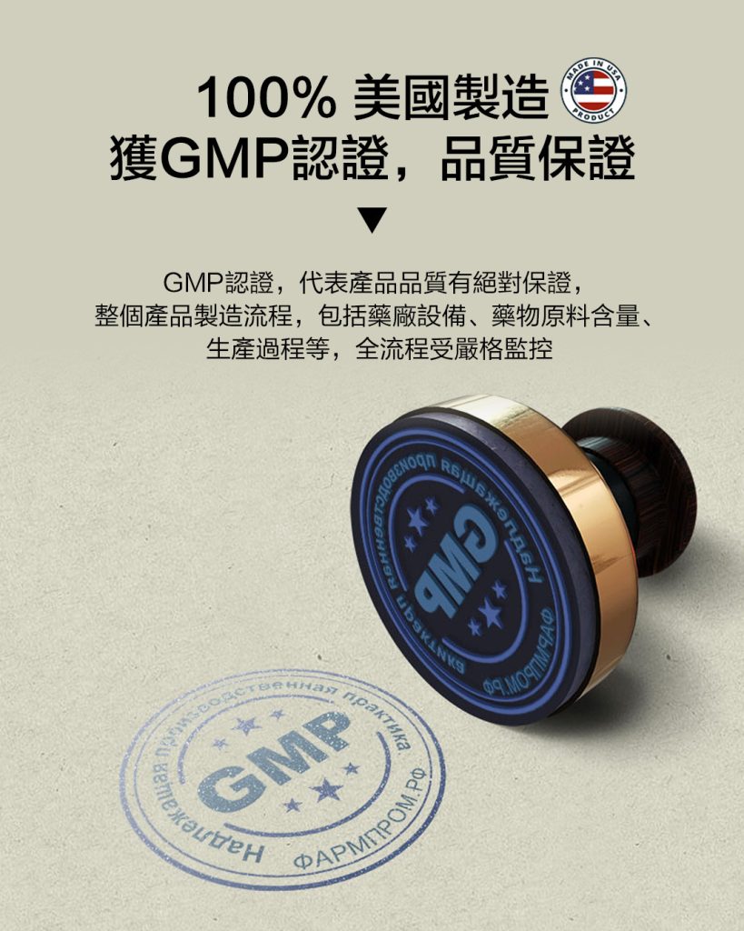 GMP確保產品安全、有效、高品質。 這意味著消費者可以相信他們購買的產品質量上乘,並且含有標籤上列出的成分。