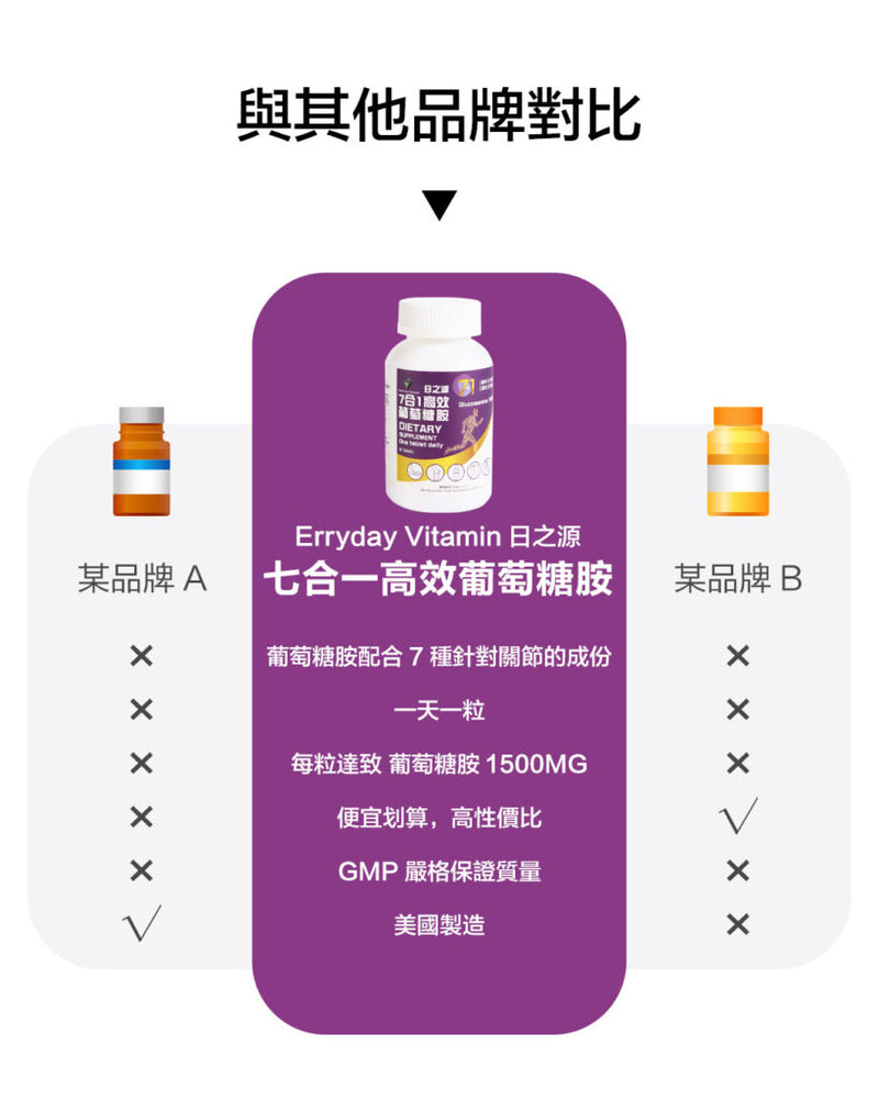 Erryday Vitamin日之源 七合一高效葡萄糖胺產品,獲cGMP認證。