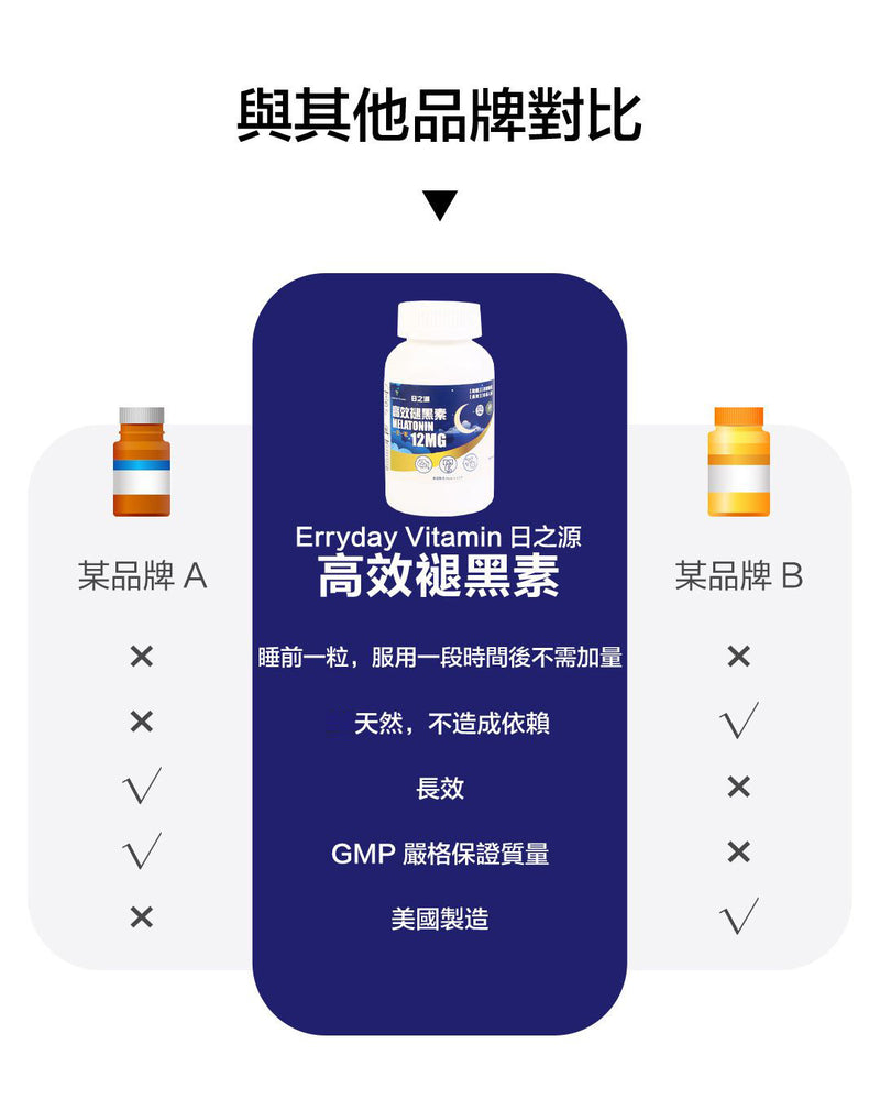 Erryday Vitamin日之源 升級版長效12MG褪黑素,由美國製造,獲cGMP認證。