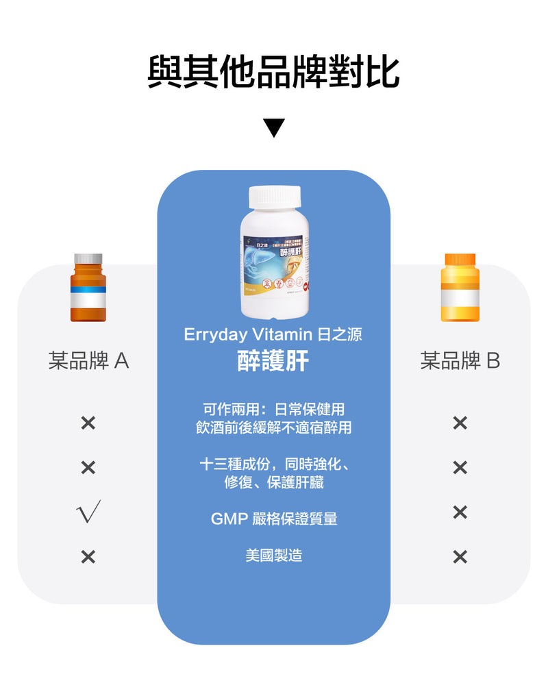 Erryday Vitamin日之源 醉護肝,由美國製造,獲cGMP認證。