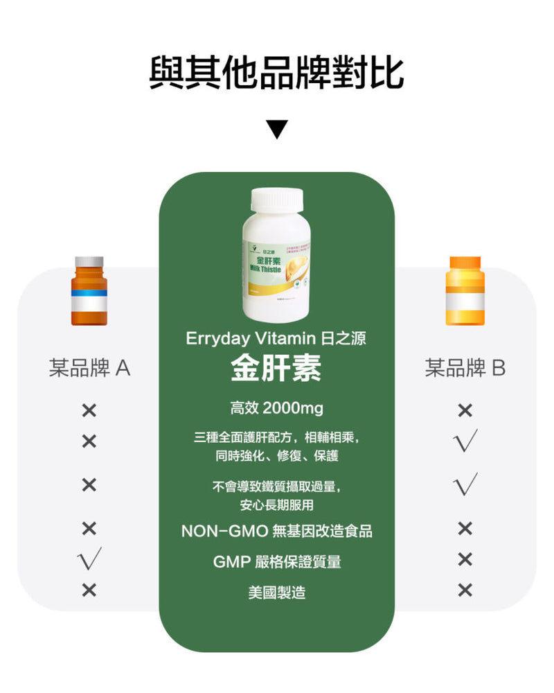 Erryday Vitamin日之源 金肝素,含三種獨特護肝天然成份: