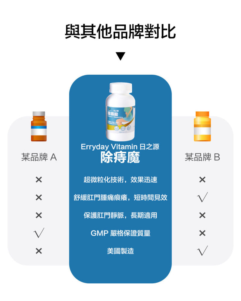 Erryday Vitamin日之源「除痔魔」,由美國製造,獲cGMP認證。