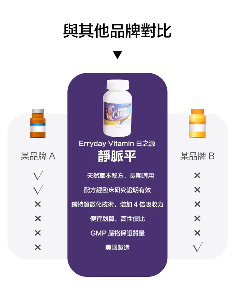 選擇 Erryday Vitamin 靜脈平,讓您的靜脈健康得到全面呵護,享受更輕鬆自在的生活!